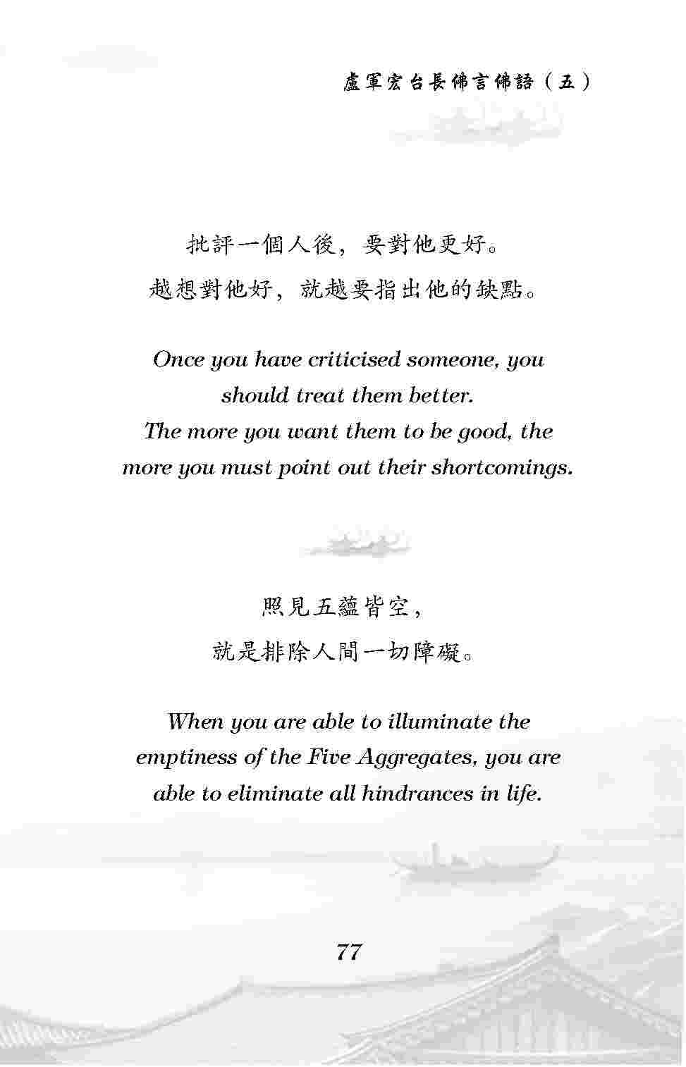 When you are able to illuminate the emptiness of the Five Aggregates, you are able to eliminate all hindrances in life.